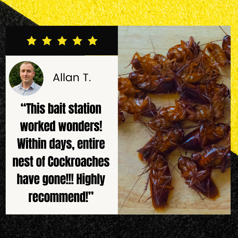 “This bait station worked wonders! Within days, the entire nest of cockroaches was gone!!! Highly recommend! I had tried multiple products before, but nothing seemed to work. My frustration peaked with cockroaches constantly infesting my pantry and cupboards. After using this bait station, I finally have a cockroach-free home. It's a relief to not see them scurrying around anymore. Worth every penny!- Allan T.